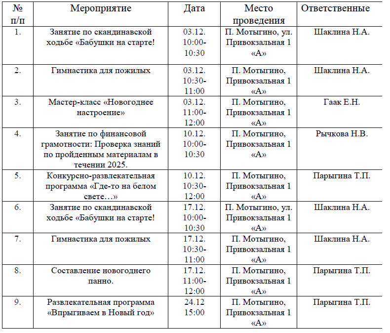План на декабрь 2025: