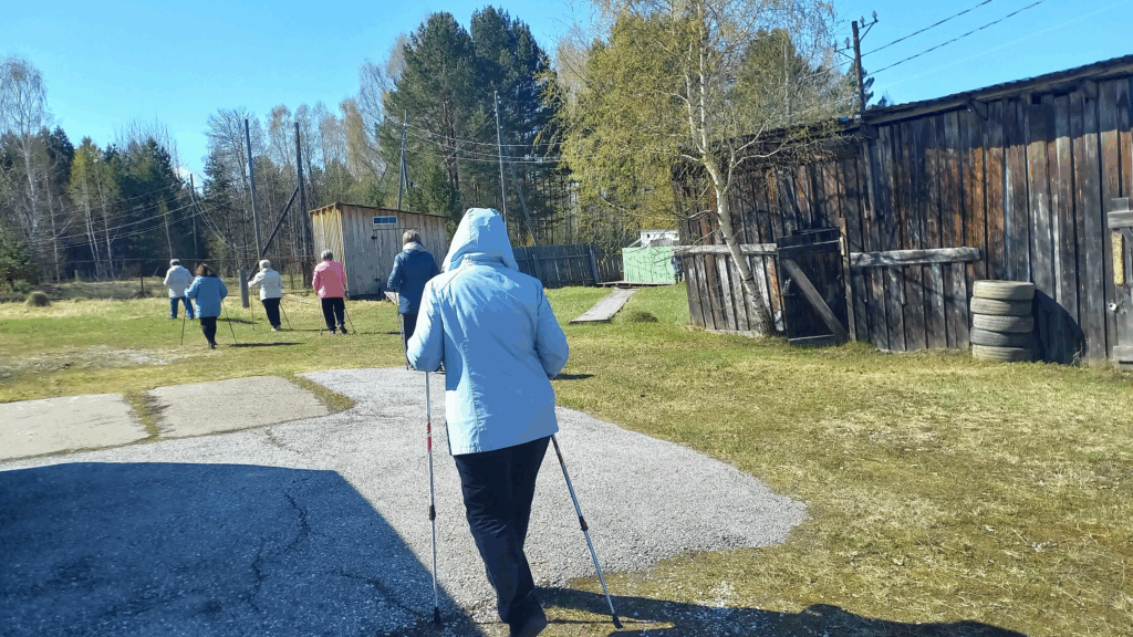 16 мая в КГБУ СО «КЦСОН «Мотыгинский» прошло очередное занятие по ходьбе со скандинавскими палками.