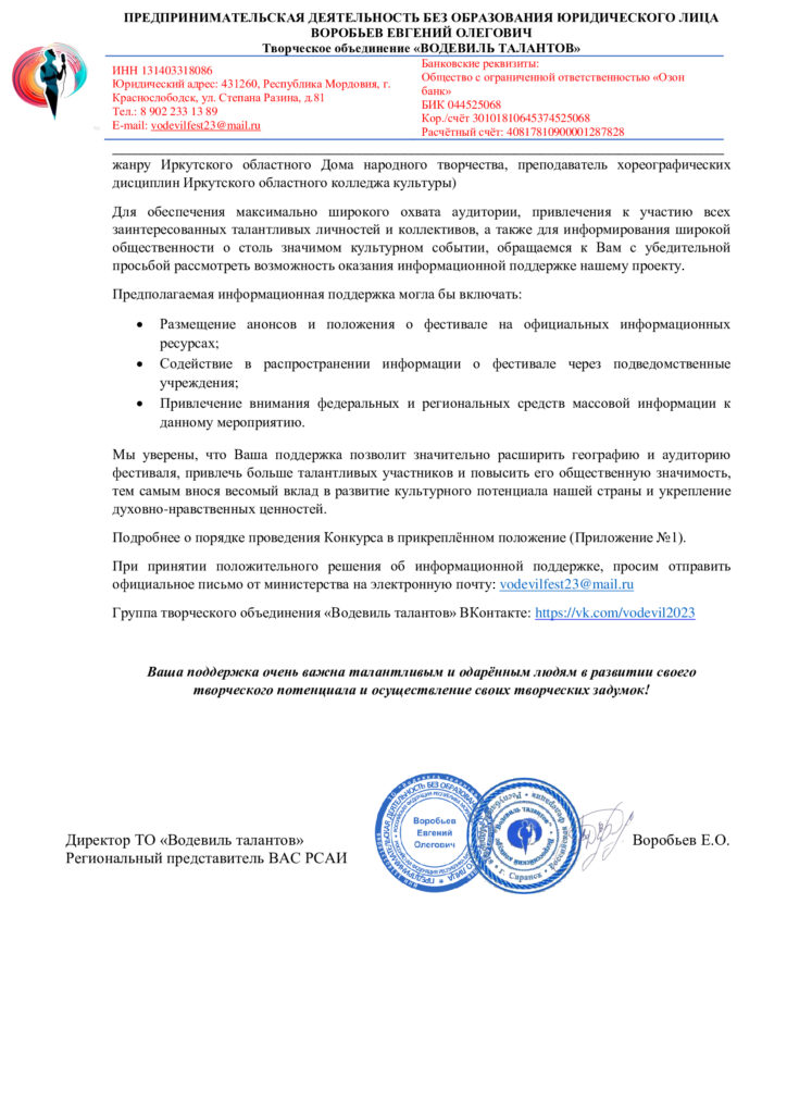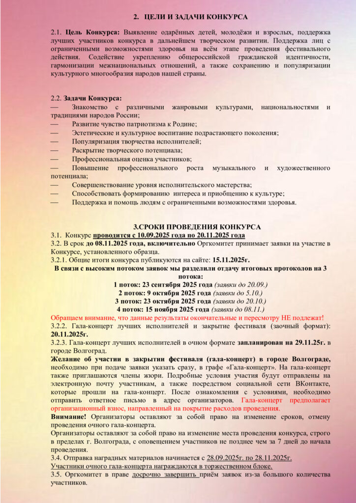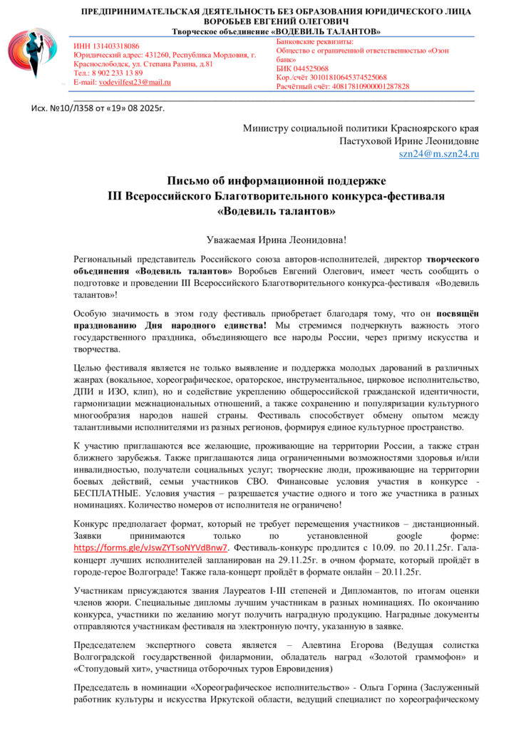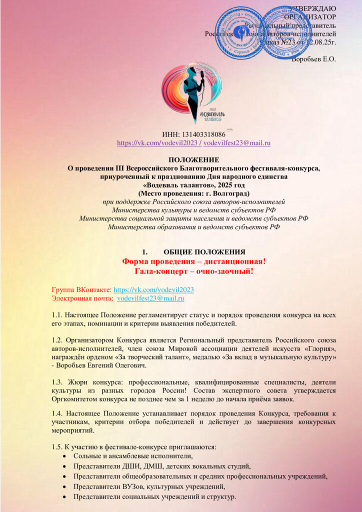 с 10.09. — 20.11 2025 года состоится Всероссийский Благотворительный конкурс-фестиваль, приуроченный к празднованию ДНЯ НАРОДНОГО ЕДИНСТВА.